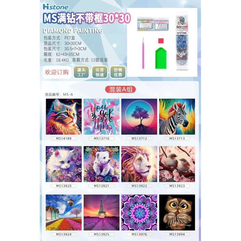 The kit shown is from the "HI STONE" collection and includes all necessary materials to complete the art piece.