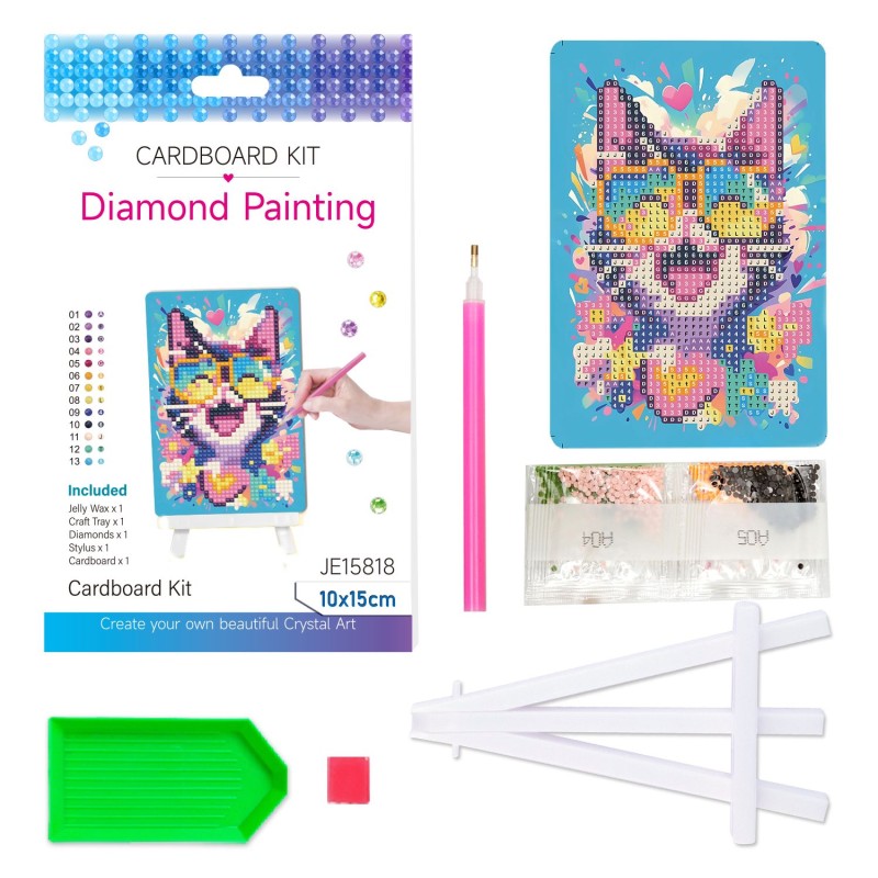diamond painting kits, which are a craft where small, faceted resin "diamonds" are applied to an adhesive canvas to create a mosaic-like image.