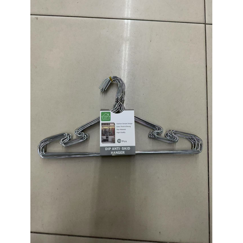A set of plastic-dipped stainless steel clothes hangers. They are designed to be non-slip to keep garments securely in place.