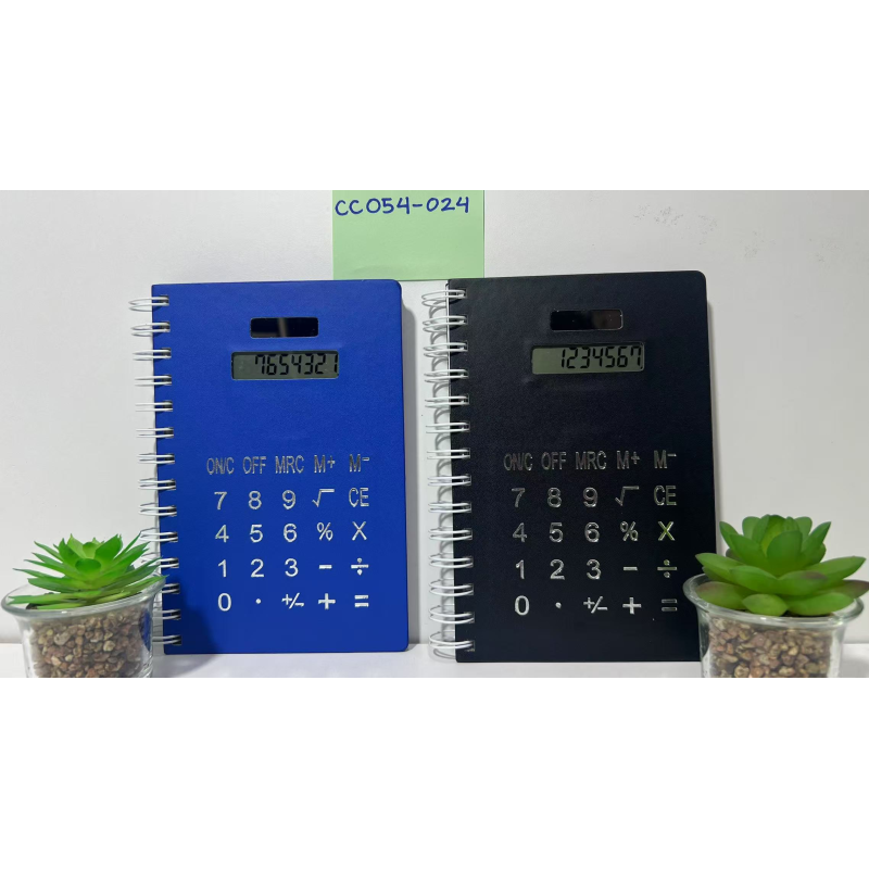 The notebooks feature an integrated, solar-powered calculator on the cover.