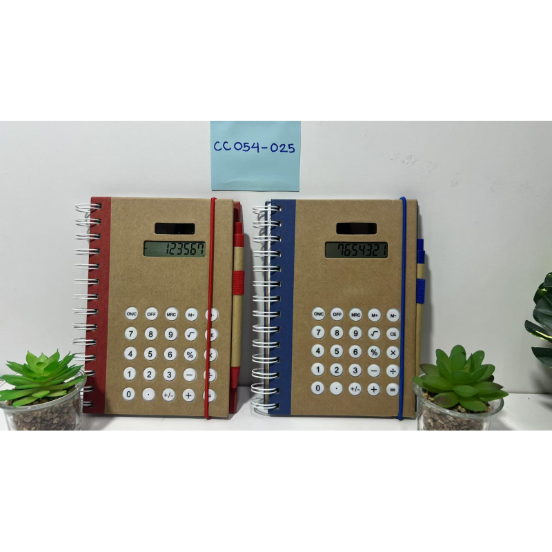 The notebooks feature an integrated, solar-powered calculator on the cover.