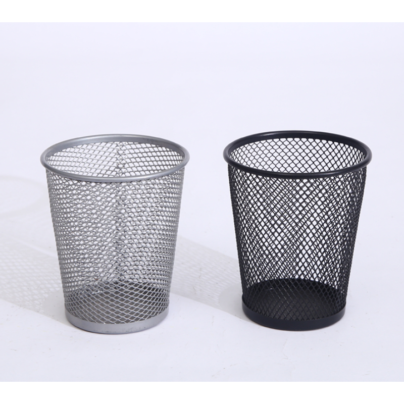round metal mesh pencil holders, typically sold as a set of three different sizes.