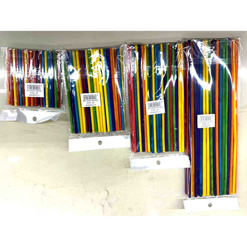 These are packs of assorted, multi-colored pipe cleaners or RGS Group Pick up Bamboo Wands.