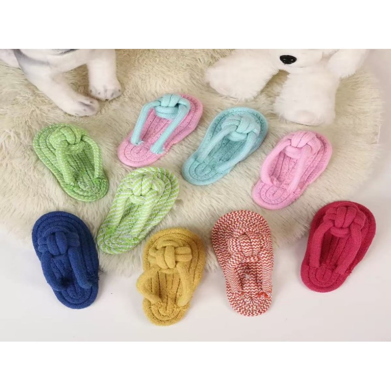 Pet Rope-Knitted Toy, shaped like a slipper. It is a durable, cotton rope chew toy designed for dogs and cats for interactive play, teeth cleaning, and training.