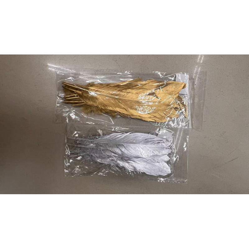 These are natural goose or turkey feathers that have been dyed or dipped in metallic colors.