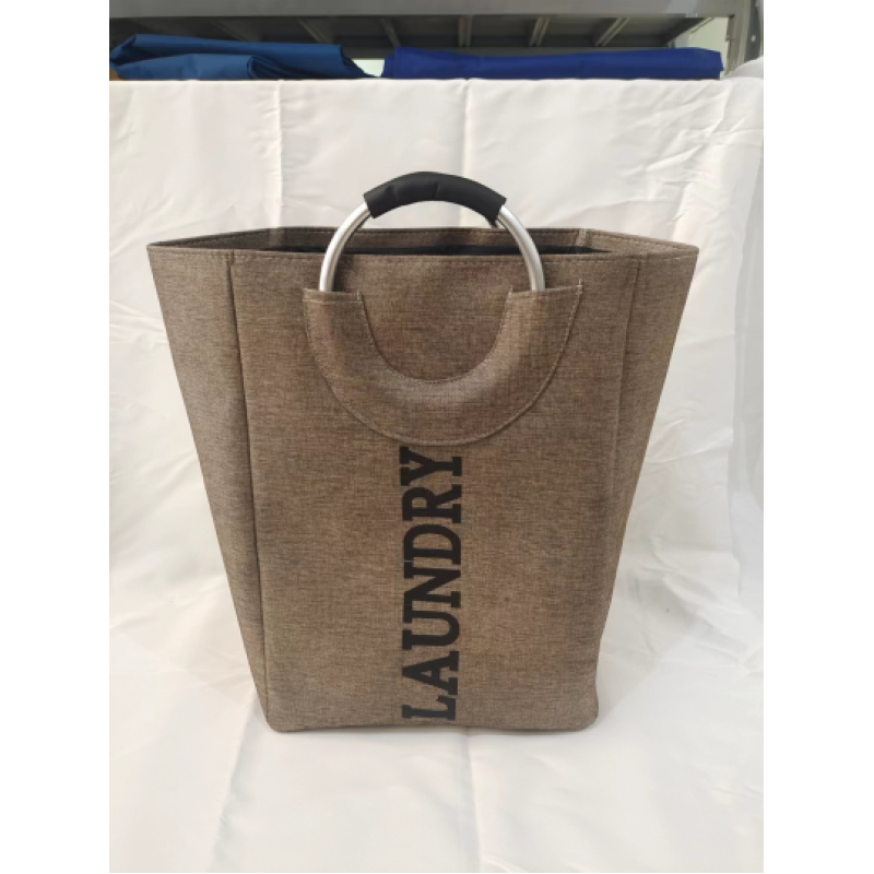 Creative Deco 75L brown linen foldable laundry basket with handles.