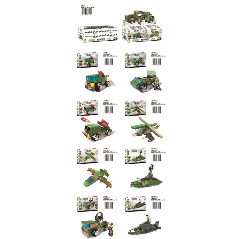 military-themed building blocks, which can be used to construct different military vehicles and structures.