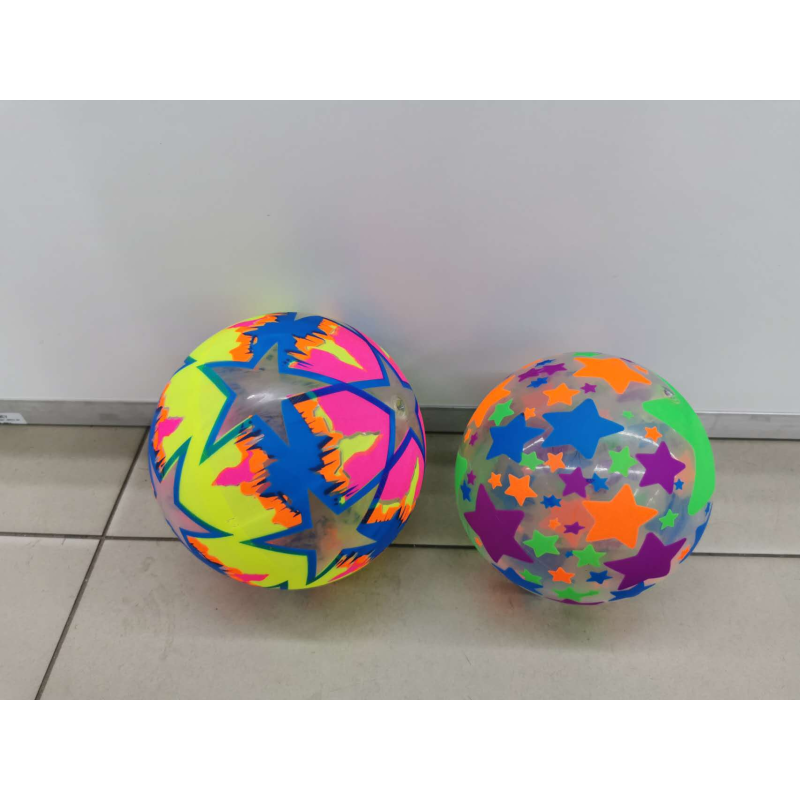The ball on the right is more translucent, with various colored stars visible inside or on the surface.