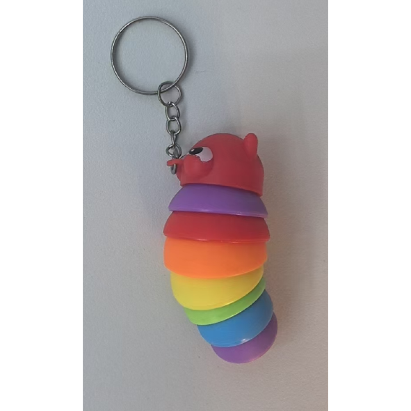 rainbow sensory slug fidget keychain. is a portable, articulated toy designed for stress relief and sensory play.