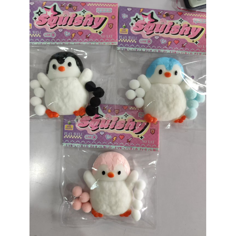 set of three "Squishy" brand penguin squeeze toys.