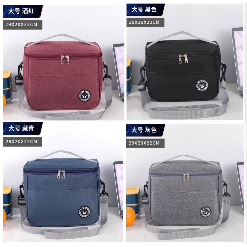 A portable insulated lunch cooler bag. The bag is designed to keep food and drinks at the desired temperature for several hours, making it suitable for work, school, picnics, or travel.