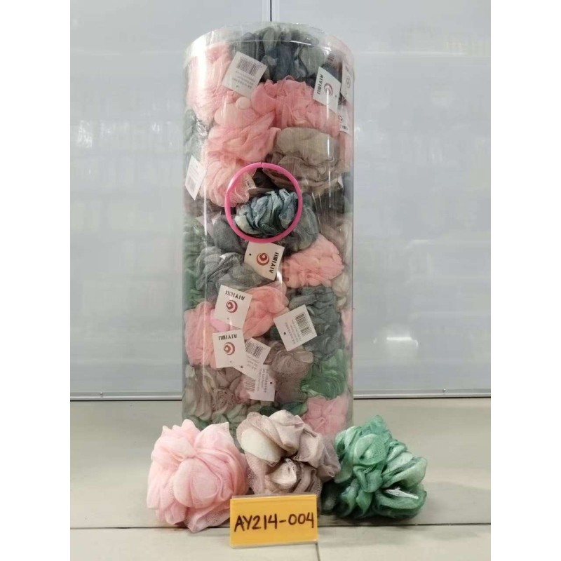 The image displays a bulk package of assorted bath sponges, also commonly known as loofahs or shower poufs. These products are typically made of durable mesh designed to create a rich lather with soap or shower gel.