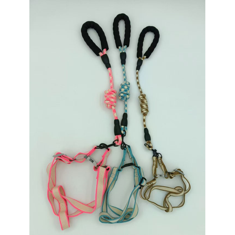 dog harness and lead sets with a vibrant, tie-dye color scheme.