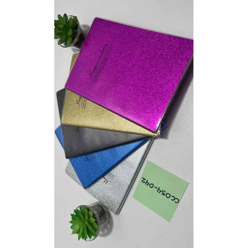 glitter notebooks and glitter foam sheets. stationery items commonly used for art projects, scrapbooking, and general note-taking.