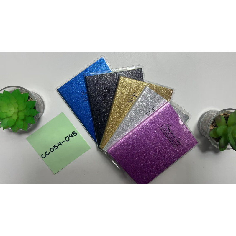 glitter notebooks and glitter foam sheets. stationery items commonly used for art projects, scrapbooking, and general note-taking.