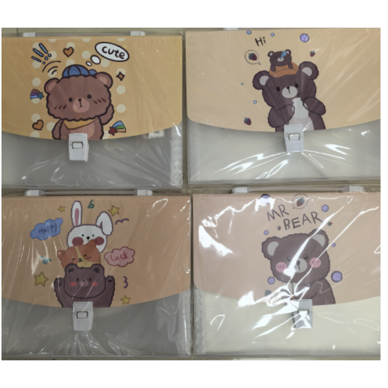 cartoon-themed accordion expanding file bags. These are designed for organizing documents and papers with flair.