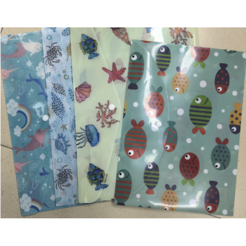 plastic carry folders, also known as file folders or document bags, featuring various sea animal designs. They are designed to protect and transport documents.