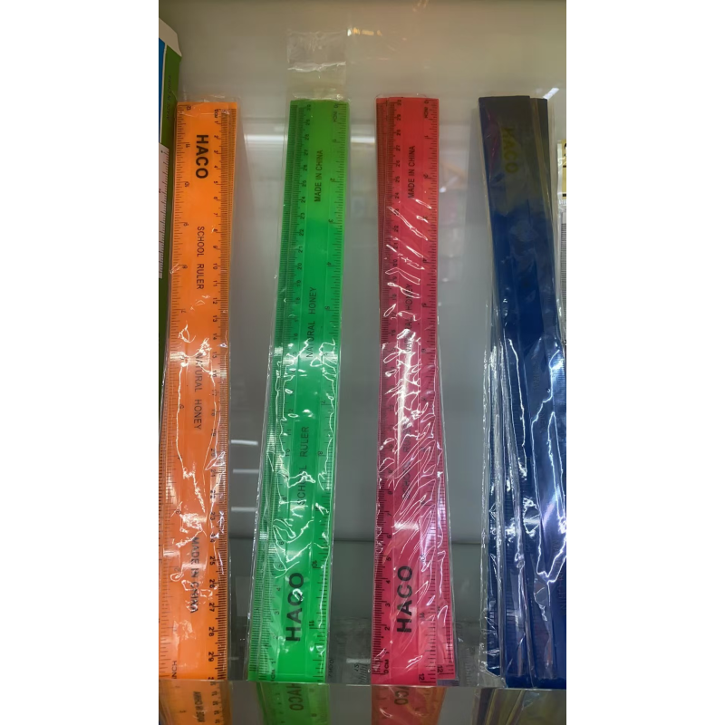 Haco plastic rulers in assorted colors.
